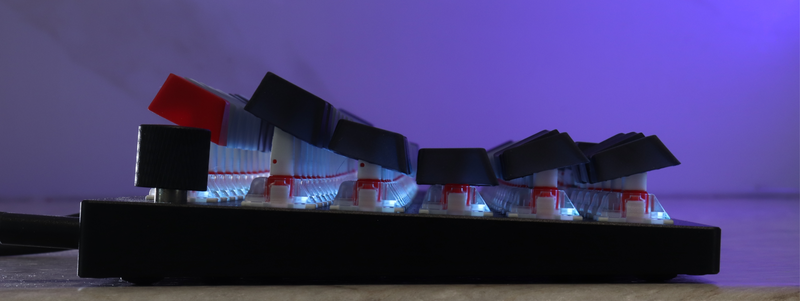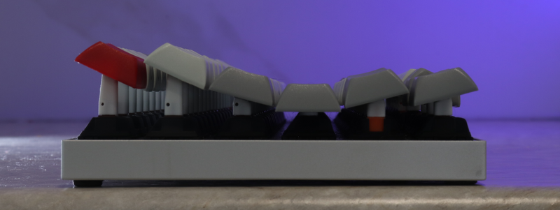 That being said, the added tilt can cause some 'stepping' to occur between rows, for that reason, we recommend to use none-sculpted keycaps that have a large flat top. This will result in a smoother curve between rows. XDA is an ideal profile for this, DSA is also a great option.